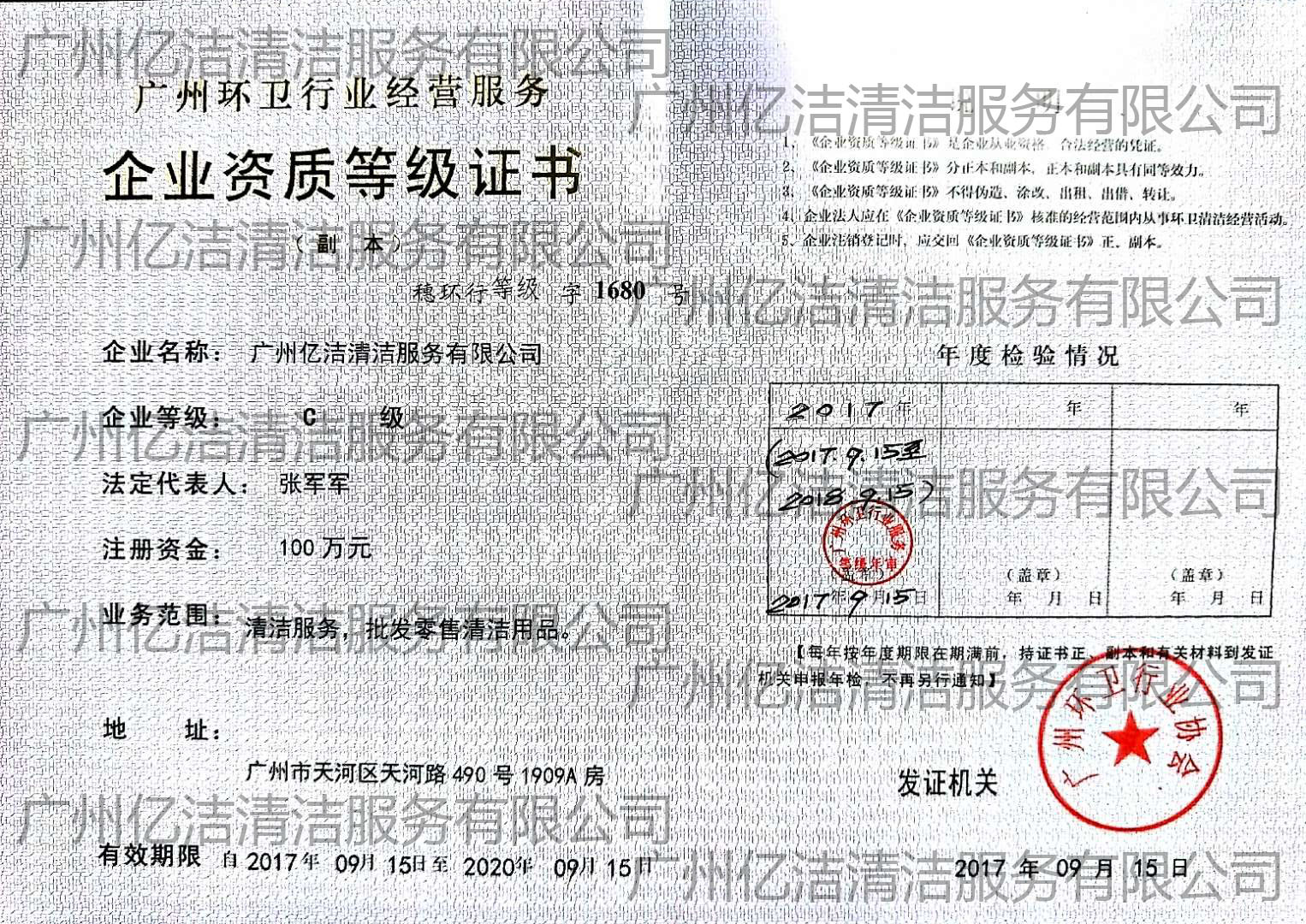 廣州億潔清潔服務有限公司是經廣州市工商行政管理局批準成立的(注冊資本:100萬元人民幣)。具有獨立法人資質。公司成立2015年,公司具備完善的管理體系和高素質管理隊伍,擁有特種技術人員33名,保潔服務人員上萬名,覆蓋廣州市,能及時調配并快速投入高效運行。我們的每個員工都經過公司的嚴格篩選,嚴格培訓,定期培訓后持證上崗以保證服務品質,保障客戶的權利,利益,形象等不受損失。 廣州億潔清潔公司是一家設備齊全,技術強大的綜合型清潔服務公司,為客戶提供完善服務尊定了堅定的基礎。 司于2010年全面推行了ISO9001質量管理體系認證和ISO14001國際環保體系認證。先后獲得廣州高層建筑外墻清洗維修作業【安全資質證書】、【廣州環衛企業等級證書C級資質】、廣州疾控中心頒發的【四害消殺服務資質證】、【空氣治理A級資質】、中國石材協會頒發的【石材資質B級資質】等。 廣州億潔清潔服務有限公司致力于打造專業、實惠、靠譜的保潔服務公司,把專業的事情交給專業的我們,您放心! 億潔清潔服務項目: 廣州保潔服務:新建樓宇、別墅、酒店、醫院、辦公樓、賓館、企事業單位廠房竣工后開荒及裝修后精細保潔.工程保潔服務。 廣州物業托管:為廣州市各大企事業單位、賓館、政府機關、小區物業、酒店及廠房提供專業化保潔、園林、設施維護等管理服務。 廣州高空作業:高空玻璃幕...[詳情]